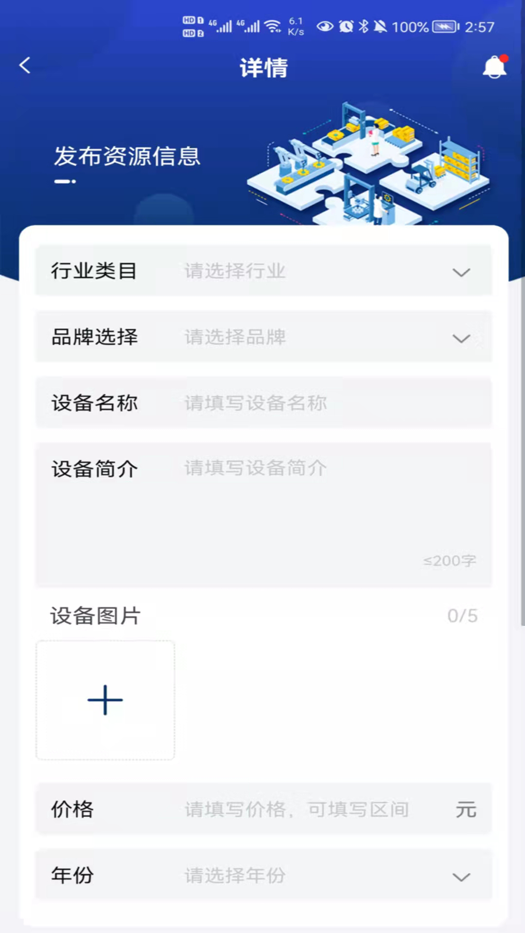 用户入驻功能:平台支持企业用户和个人用户两种入驻方式,满足不同规模用户的业务需求。企业用户可享受专属认证标识和更多展示机会,个人用户也能轻松开展设备交易业务。