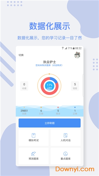 离线答题,章节练习、专项提高、模拟测试多种练习模式;