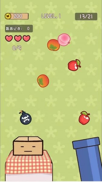 这是一款以收集水果为主题的休闲益智游戏,操作简单但充满挑战性。玩家需要控制盒子移动,接住从屏幕上方掉落的各种水果,同时要小心避开危险的炸弹。游戏设置了明确的过关目标,每关需要收集指定数量的水果才能通关。随着关卡推进,水果下落速度会逐渐加快,炸弹出现的频率也会增加,非常考验玩家的反应能力。游戏画面色彩鲜艳,音效活泼,能给玩家带来轻松愉快的游戏体验。