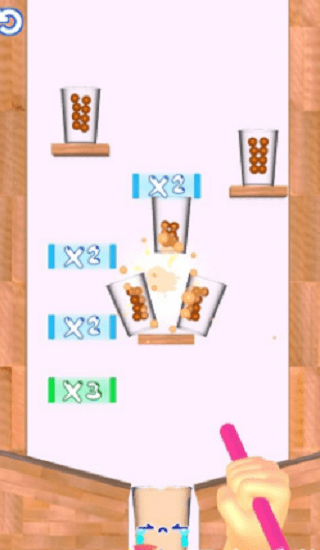 游戏的核心玩法简单易懂但充满策略性。玩家需要通过精准的射击来击破不同位置的玻璃杯,让里面的波巴顺利落入下方的奶茶杯中。随着关卡的推进,游戏会引入各种有趣的机制,比如可以增加波巴数量的倍增门,玩家需要巧妙利用这些特殊道具来快速完成任务。操作方式非常直观,只需点击屏幕就能完成射击动作,但要想获得高分,就需要仔细规划射击角度和路线,确保波巴能通过倍增门获得数量加成,最终达到关卡要求的收集数量。