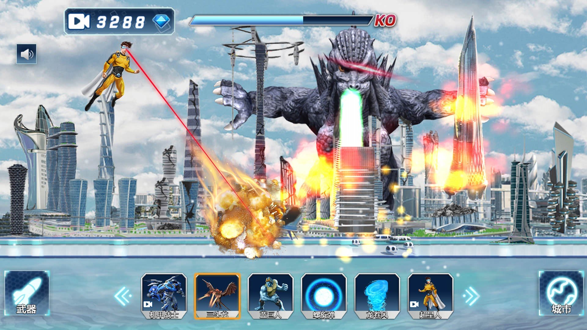 经历数十个不同的城市,每个城市都有独特的建筑风格和地形特征,借助可怕的轨道武器,来将城市毁灭。从繁华的现代都市到复古的欧洲小镇,每个场景都经过精心设计。可以使用哥斯拉、超人等外空武器进行摧毁,这些特殊角色都拥有专属技能和必杀技,快来体验一下吧。哥斯拉进入狂暴模式时,会释放原子吐息,战斗力爆表的时刻,让城市成为地狱。游戏还支持天气系统,在雷暴天气下破坏效果更加震撼。