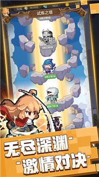 这款游戏采用了独特的像素艺术风格,画面精美且富有怀旧气息。作为一款兼具挂机玩法的休闲益智手游,它让玩家在忙碌之余也能享受游戏乐趣。你将化身一位勇敢的冒险者,勇闯神秘的试炼之塔,与各种奇异的怪物展开激烈交锋。通过不断的战斗历练,你的角色将获得成长,提升等级,解锁更多强力技能。游戏还设计了丰富的装备系统,让你可以自由搭配,打造专属的战斗风格。