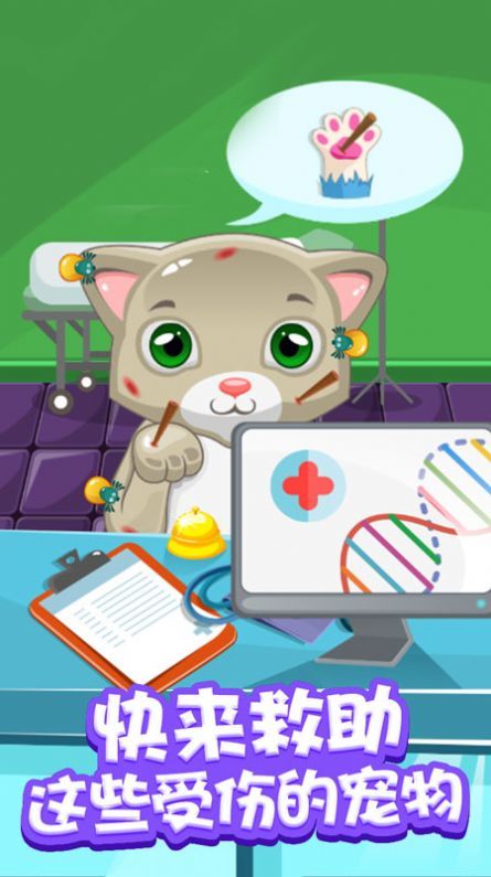 在《喵喵宠物医院》这个充满爱心的猫咪世界里,你将经营一家设备完善的宠物诊疗中心。游戏真实还原了宠物医院的运营流程,从挂号分诊到康复护理都需亲力亲为。每只来访的猫咪都拥有独特的病历档案,有的需要X光检查骨折,有的要输液治疗肠胃炎,甚至还会遇到需要紧急手术的危重病例。随着游戏进程,你不仅能学习专业的宠物医疗知识,还能通过完成特殊病例解锁隐藏剧情,了解每只猫咪背后的暖心故事。
