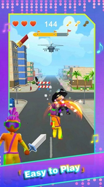 获得更多金币,更换角色和服装。用最强技能消灭所有敌人也很不错;丰富的装扮系统满足个性化需求。趣味奔跑,完成你的战斗乐趣,你才是真正的快跑者;游戏节奏明快,带来爽快的跑酷体验。跟着音乐快跑吧。我相信你的实力绝对没有问题;音乐与跑酷的完美结合让人欲罢不能。