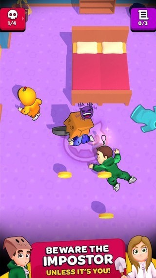 游戏最引人注目的特色之一就是其独特的卡通美术风格,鲜艳的色彩搭配夸张的角色造型,营造出轻松诙谐的游戏氛围。游戏支持多人联机功能,您可以邀请好友组建专属团队,共同挑战各种有趣的任务。游戏中的武器系统极具创意,玩家需要通过探索场景来收集各种道具,这些道具不仅能帮助您完成任务,还能在关键时刻保护自己或淘汰对手。游戏特别注重策略性玩法,玩家需要时刻保持警惕,通过观察其他玩家的行为来推断其真实身份。越早发现冒名顶替者,就能获得越丰厚的奖励,这大大增加了游戏的紧张感和刺激性。