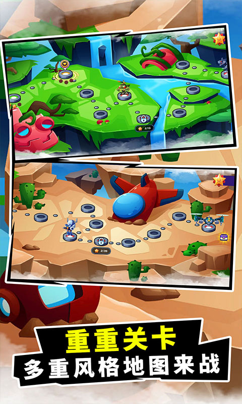 游戏采用关卡制设计,每个关卡都有独特的地图场景和色彩风格,让玩家始终保持新鲜感。玩家需要掌握精准的射击技巧,特别是投弹射击玩法,考验玩家的瞄准能力。游戏内设有丰富的商城系统,玩家可以通过战斗获得道具卡片,不断强化自己的装备和技能。随着游戏进程的推进,玩家将面临越来越强大的敌人,需要不断调整战术策略。