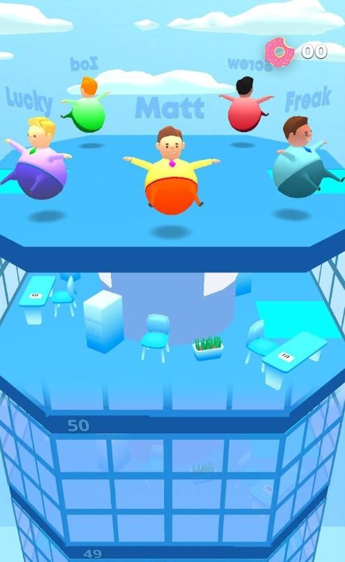 简单的下坠跳跃玩法,和可爱的胖子一起参与精彩刺激的跳跃挑战,收集路上的甜甜圈,让胖子变得更加有弹性和有力量。建议优先收集金色甜甜圈,它们能提供双倍弹跳加成,当连续吃到三个同色甜甜圈时会触发短暂无敌状态。