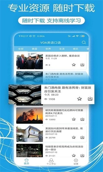 VOA英语口语是一款专业的英语学习应用,专注于提升用户的英语口语能力。通过真人语音播报功能,用户可以模仿标准发音,逐步改善自己的口音问题。应用内置强大的中英互译系统,能够即时翻译单词和句子,帮助用户理解难点内容。无论是日常交流还是专业场景,VOA英语口语都能提供个性化的学习方案,让英语学习变得更加高效有趣。
