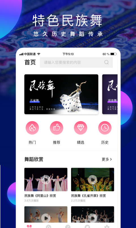 这种载歌载舞的形式,自由、生动、活泼,可以比纯舞蹈易于表现更多的生活内容,而且通俗易懂。APP特别注重舞蹈与音乐的结合,让用户在轻松愉悦的氛围中学习舞蹈,感受民族文化的独特魅力。