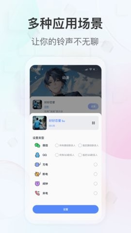个性铃声专区汇集了动漫、日语、可爱、电子等数十种风格分类,总数量超过10万首,总有一款能打动你的心。操作流程经过精心优化,从选择到设置仅需30秒,无论是微信QQ消息提示音,还是充电断电提示音,都能轻松搞定。自定义功能尤为强大,支持通过录音、音乐剪辑、视频提取等多种方式制作铃声,甚至可以调整音效参数,打造独一无二的专属铃声,充分展现你的创意和个性。