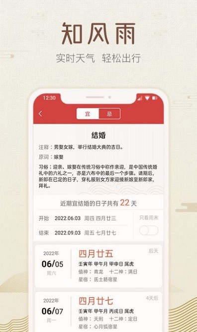 好知日历软件中除了查看每日日历外,还可以了解每天的天气状况。实时更新当地天气信息,为出行提供参考建议。
