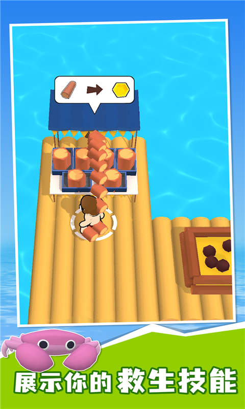 《木筏战争》是一款充满童趣的海洋冒险手游,采用明亮鲜艳的卡通画风打造了一个危机四伏的漂流世界。玩家将扮演一名海上求生者,从最初只有几块木板的小木筏开始,通过收集漂浮的物资、扩建海上家园、研发生存科技,逐步打造属于自己的移动堡垒。游戏巧妙融合了生存建造与策略对抗元素,在波光粼粼的海面上,既要应对鲨鱼袭击等自然威胁,还要提防其他玩家发起的木筏战争。独特的物理碰撞系统和多人在线竞技玩法,让每次海浪拍打都充满变数,带来既轻松欢快又紧张刺激的双重游戏体验。