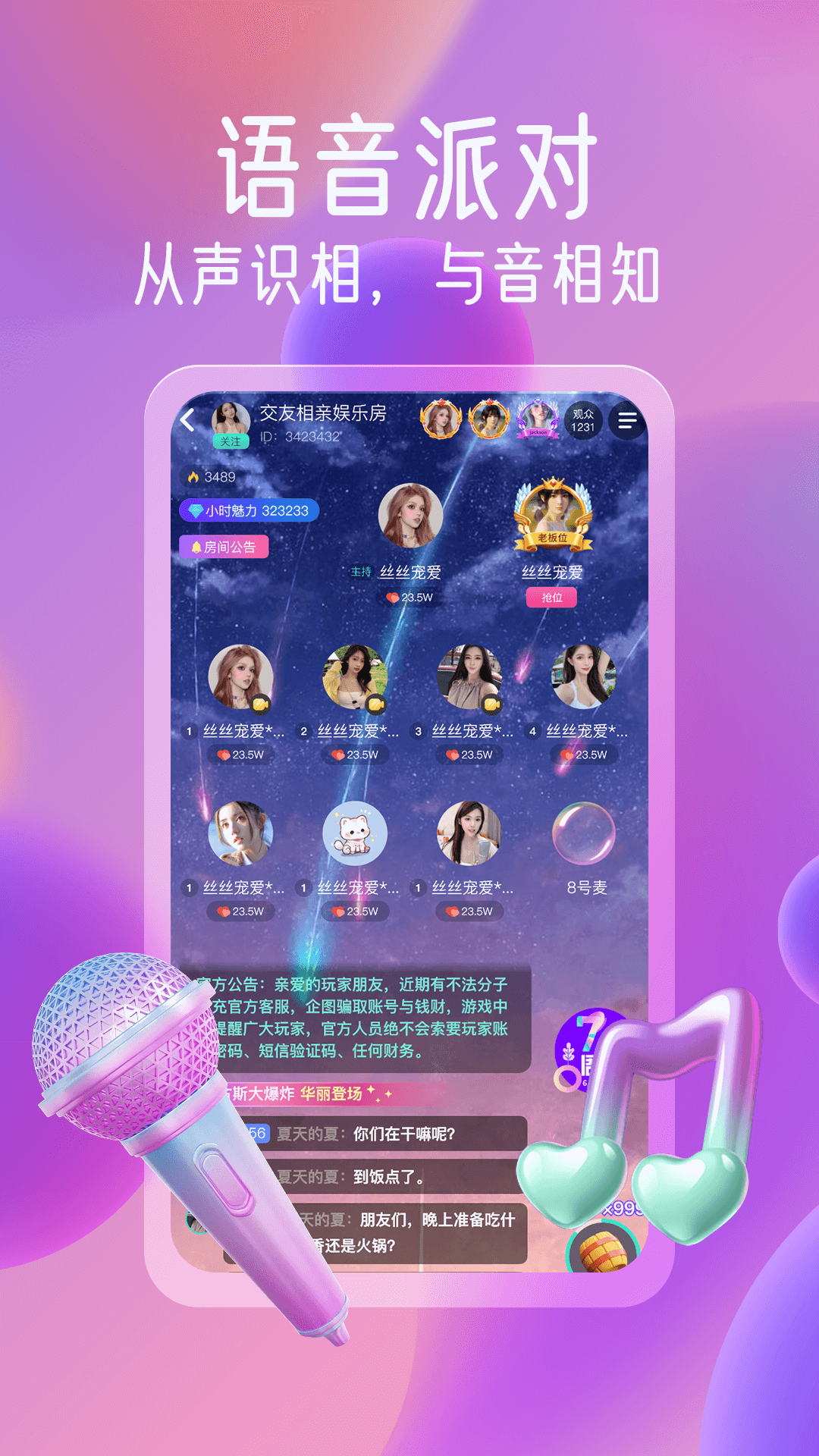 全新推出的尊贵会员服务,享受专属客服、优先匹配等多项特权。优化了语音房间的音频处理算法,彻底解决了可能出现的爆音问题,为用户提供更流畅的语音交流体验。同时新增了多款动态表情包,让聊天互动更加生动有趣。