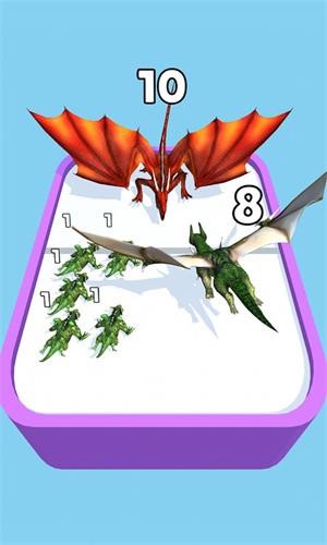 在恐龙进化对决中,玩家需要指挥恐龙在不同场景中展开激烈战斗。游戏拥有丰富多样的战斗地图,从茂密的原始丛林到炽热的火山地带,每个场景都带来独特的战斗体验。玩家需要通过策略性的合成系统来获得更强大的恐龙,只有合理搭配不同恐龙的特性,才能组建出所向披靡的战斗团队。游戏设置了多种难度级别的战斗任务,从初级训练场到终极竞技场,满足不同水平玩家的挑战需求。快速反应和精准操作是制胜关键,玩家需要不断提升手速和战术意识,才能在瞬息万变的战场上取得胜利。每种恐龙都拥有独特的战斗技能和进化路线,玩家需要深入了解它们的特性,才能打造出最具战斗力的恐龙军团。
