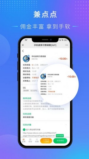 --海量福利兼职:快速报名,就近上岗。平台与众多知名企业合作,提供大量优质兼职机会,满足不同用户需求。