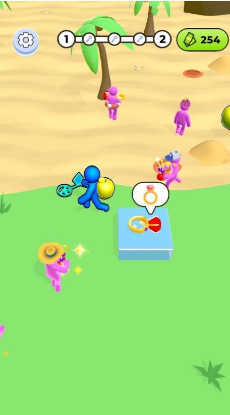 沙滩上人来人往,度假的人很多,他们会四处走动,用你的铲子不停地挖,不要被他们打扰。这些游客不仅增加了游戏的趣味性,还会随机掉落小礼物或金币。你需要灵活避开人群,同时抓住机会收集他们掉落的额外奖励,让淘金过程更加丰富多彩。